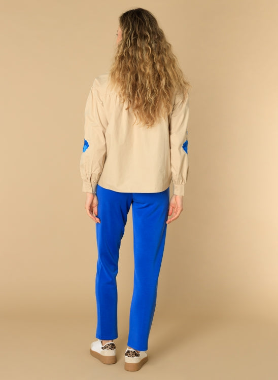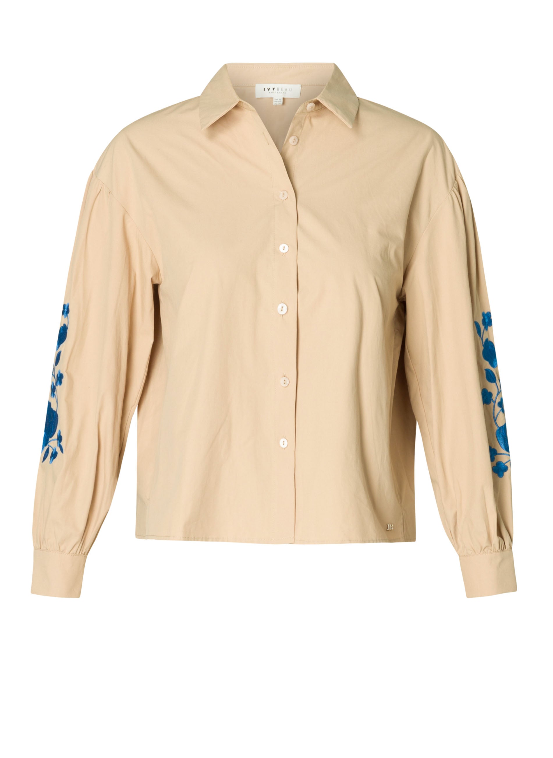 Zo’n hemd waar je je in wilt laten zien. Hemd Eslina is gemaakt van luchtig katoen en heeft pofmouwen met opvallend borduursel dat kracht en vrouwelijkheid tegelijk uitstraalt. Die mouwen stelen hoe dan ook de show.