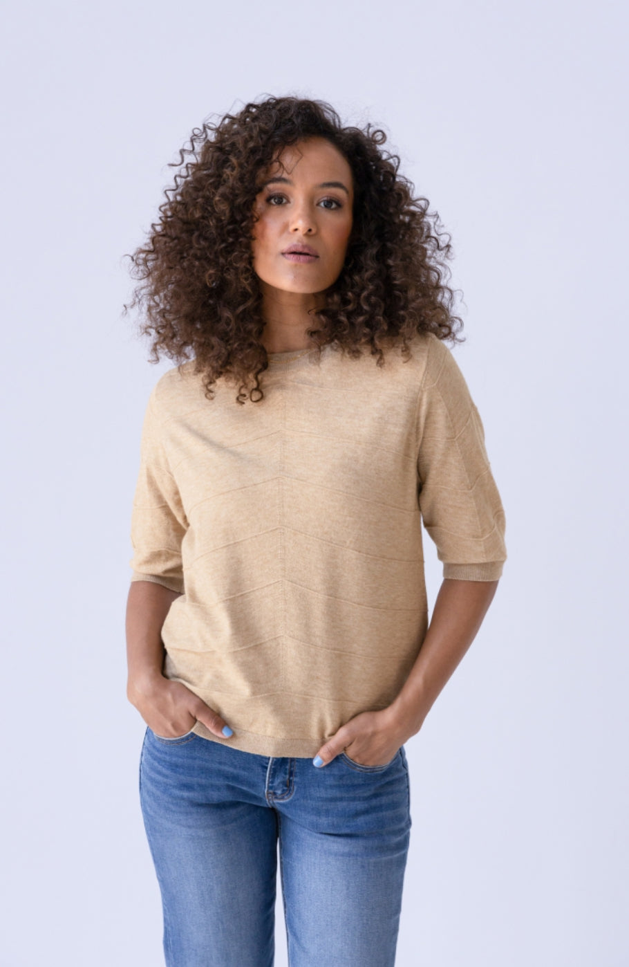 Deze bLouise in zand kleur is een ideale keuze voor het voorjaar. Het relief patroon geeft de bLouise een interessante textuur, terwijl het zachte breisel van viscose, polyester en polyamide zorgt voor een comfortabele pasvorm. De korte mouwen maken het de perfecte blouse voor de overgang naar warmer weer.
