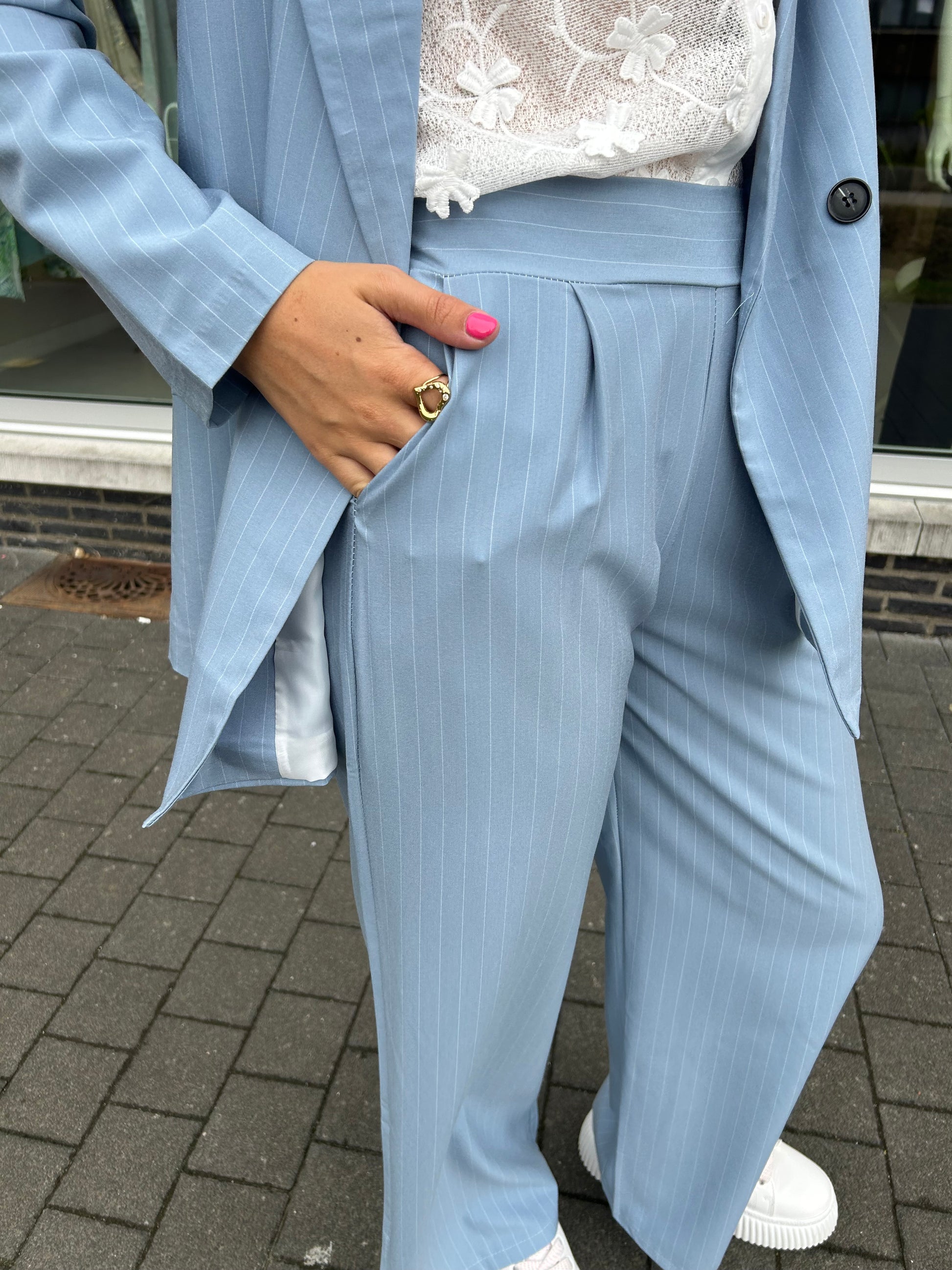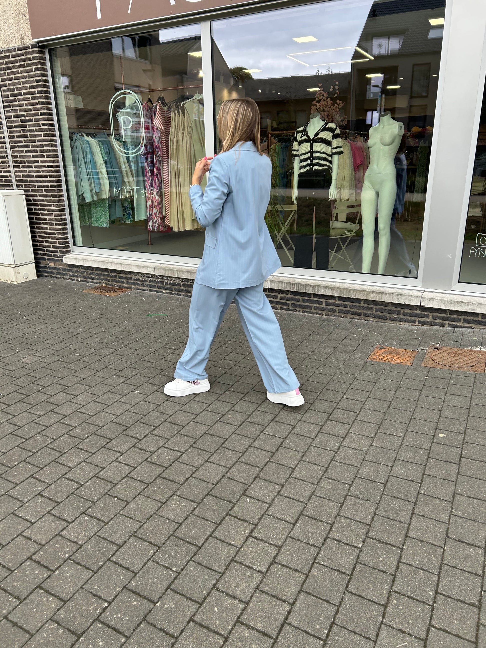 De broek heeft een elastiek aan de taille en brede pijpen. De set hebben we in 2 maten S/M of L/XL. We combineerden de broek met de bijhorende "BLAZER ANZUG" om een complete outfit te creëren.