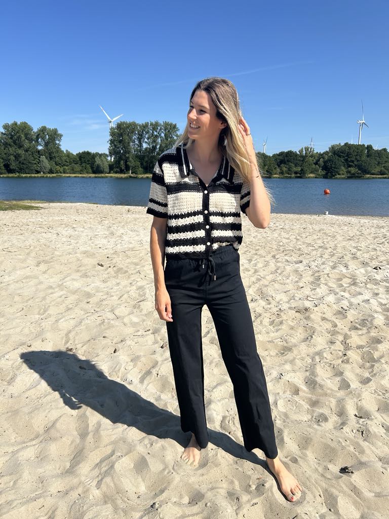 OPGEPAST: de broek tailleert iets kleiner, dus als je twijfelt neem dan zeker een maat groter.