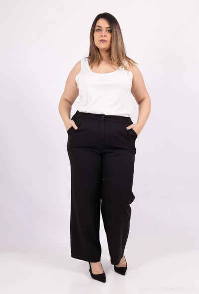 Broek Veti is een losse broek met brede pijpen. Deze broek sluit met een knoopsluiting en rits. De broek heeft een elastiek waardoor deze broek super comfortabel aansluit. We hebben deze broek in 3 verschillende kleuren en maten.