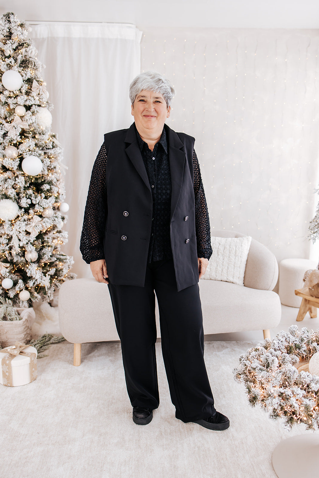 Dit gilet "Sien"van Ivy Beau is jouw geheime wapen voor een krachtige look. De mouwloze blazerstijl met double breasted sluiting en opvallende knopen geeft meteen een stijlvolle twist. De kleine schoudervulling en paspelzakken zorgen voor een strak silhouet. Perfect over een blouse, T-shirt of coltrui.