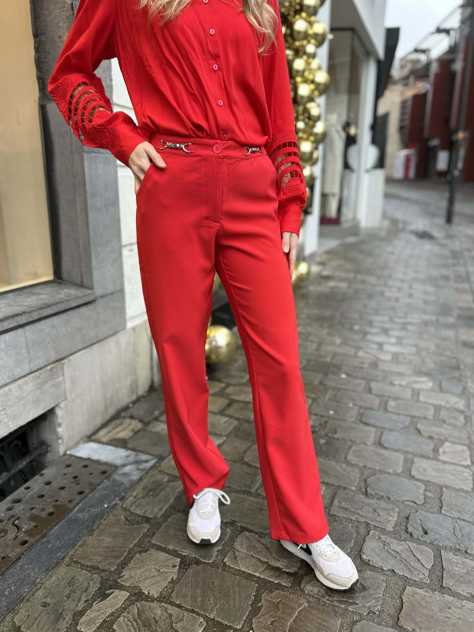 Chic zonder moeite! Deze gladde broek met rechte pijp valt perfect en voelt heerlijk soepel aan. De metalen accenten aan de tailleband geven hem een luxe twist
