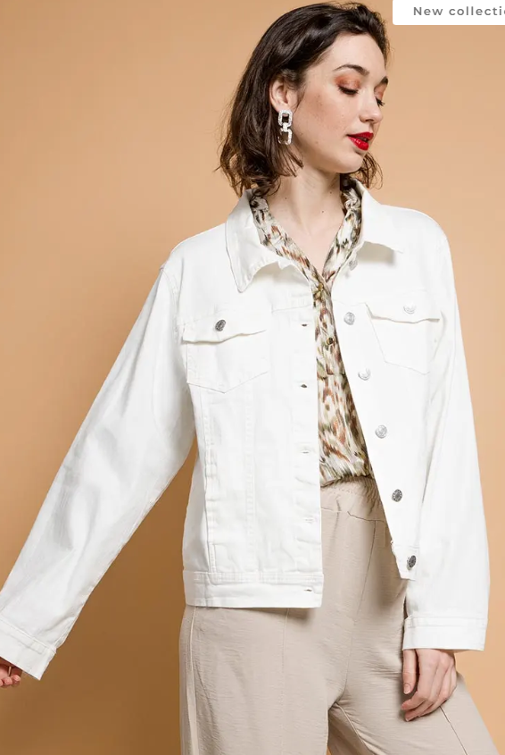 Deze witte jeansjas is een echte must-have! De middellange pasvorm geeft een moderne twist aan de klassieke denim look en zorgt voor een flatterend silhouet. Gemaakt van stevig maar luchtig katoen, is deze jas ideaal voor frisse zomerochtenden of zwoele avonden.