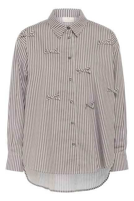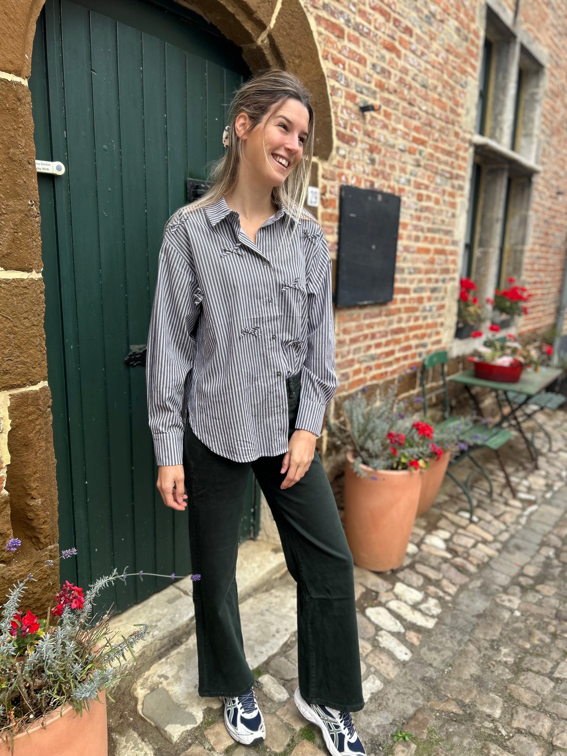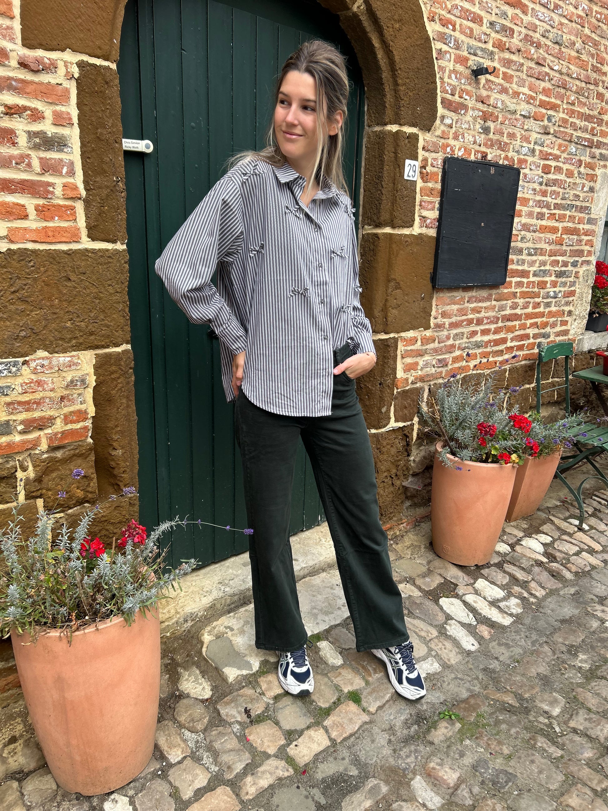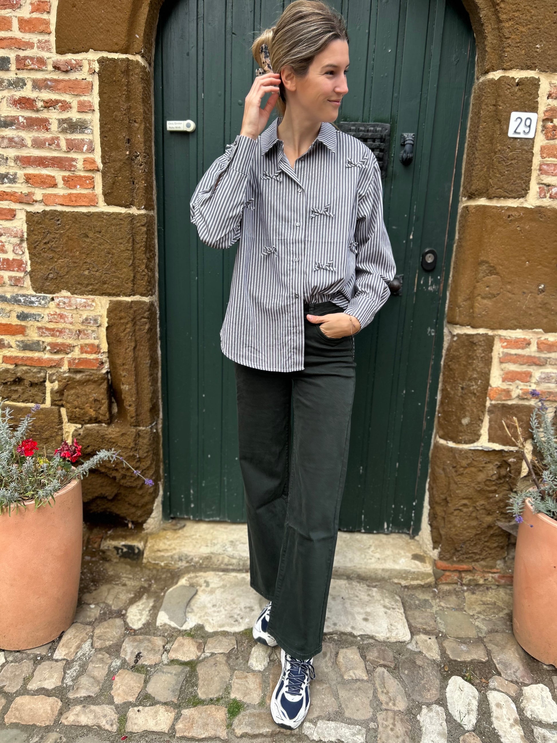 Het Marianne hemd is een modern en stijlvol kledingstuk. De klassieke button-down stijl krijgt een eigentijdse twist dankzij de losse pasvorm en lange mouwen. Schattige strikken geven de stijl een speelse touch. Gemaakt van 100% katoen, zacht en comfortabel om te dragen. Perfect met een jeans voor een coole en casual look.