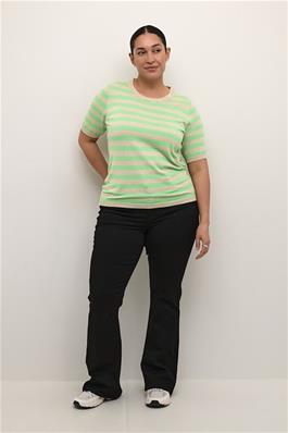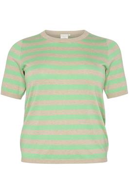 Dit truitje is een iets meer aansluitend model. De mouwen zijn tot aan de elleboog. Dit truitje heeft een mooie combinatie van de 2 kleuren taupe en groen. Kan je zo dragen of onder een blazertje. Super zacht pulletje. Horizontale strepen aan de voorkant die doorlopen naar de achterkant