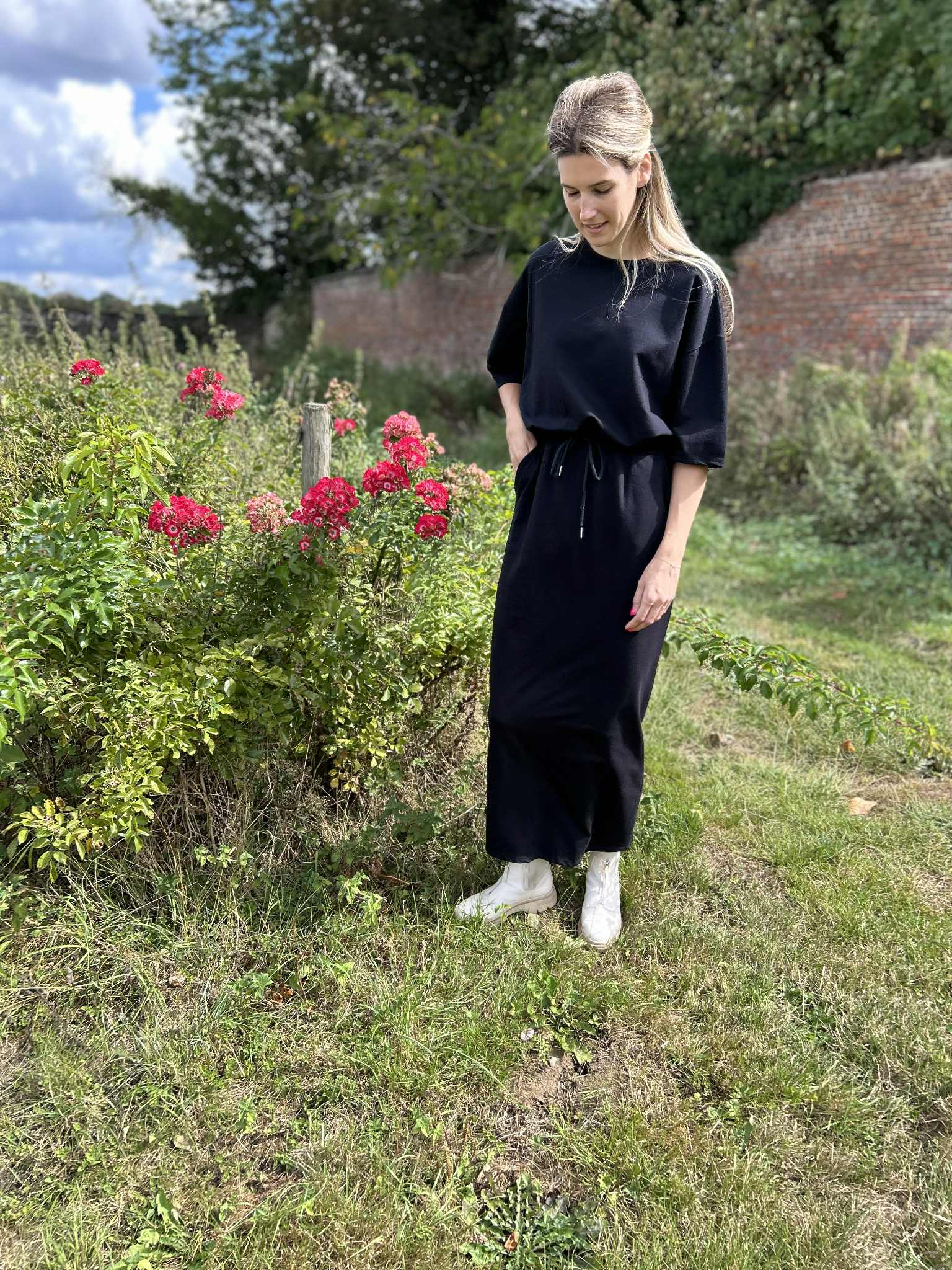 Dit essentiële duo combineert het comfort van een eenvoudig T-shirt met de vrouwelijkheid van een elegante rok, en creëert zo een silhouet dat zowel modern als verfijnd is. Het losse oversized T-shirt past perfect bij de soepele rok en vormt een set die zowel relaxed als chic is. Perfect voor een dagje op kantoor of een uitje met vrienden, deze set is de ideale optie voor wie op zoek is naar zowel comfort als stijl.