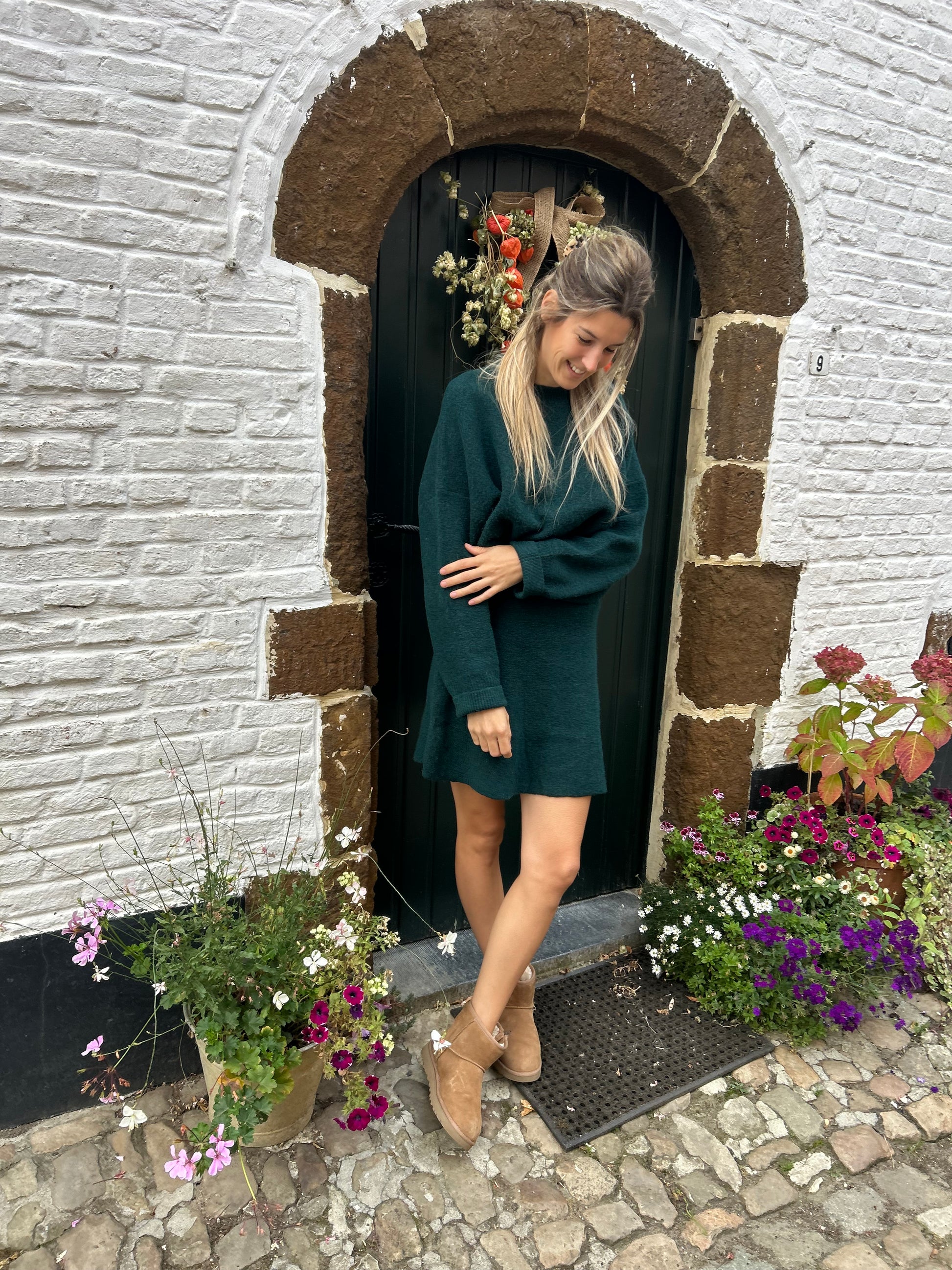 Basic ronde hals trui met lange mouwen. Losse pasvorm. Geribbelde afwerking.