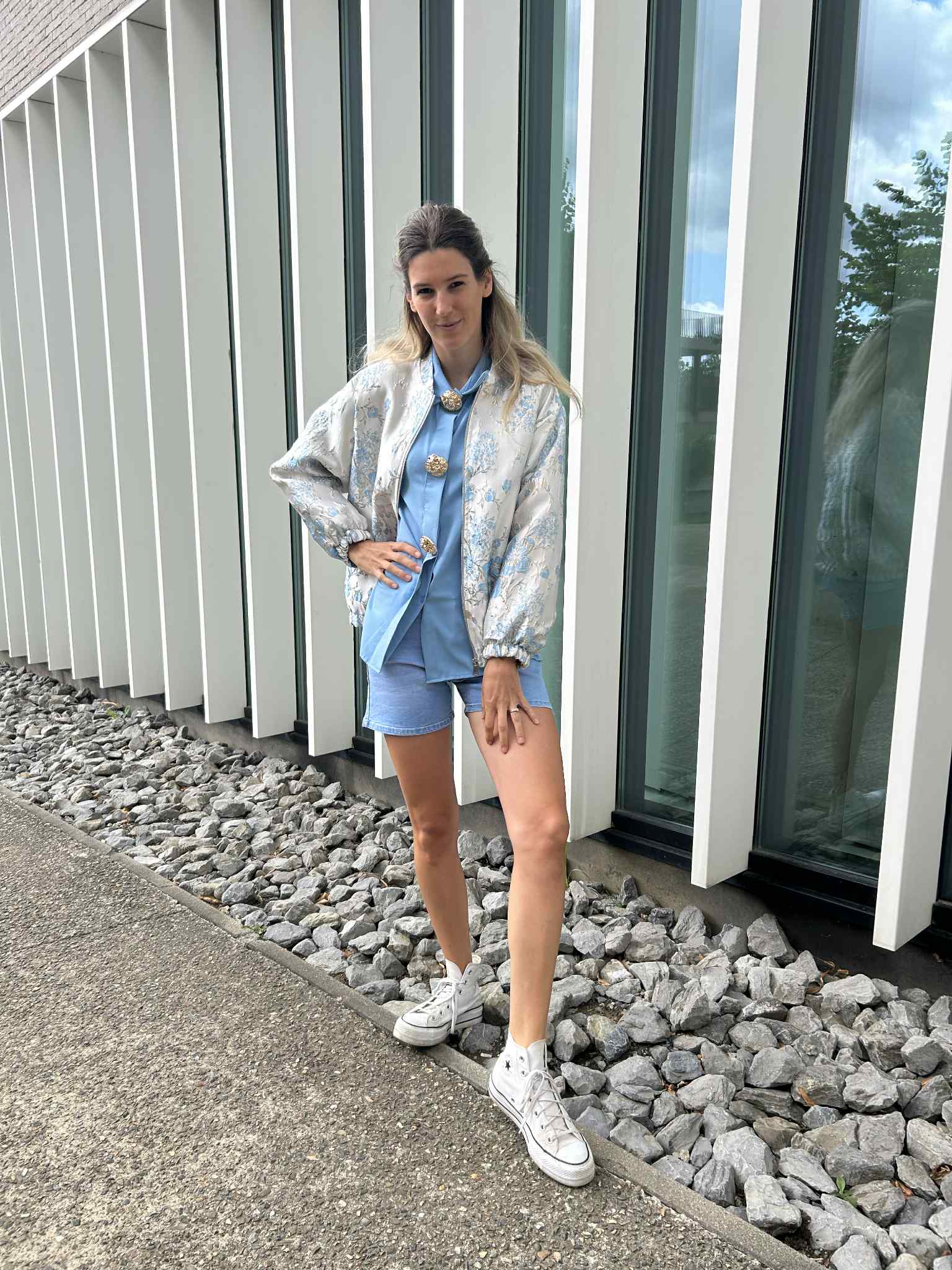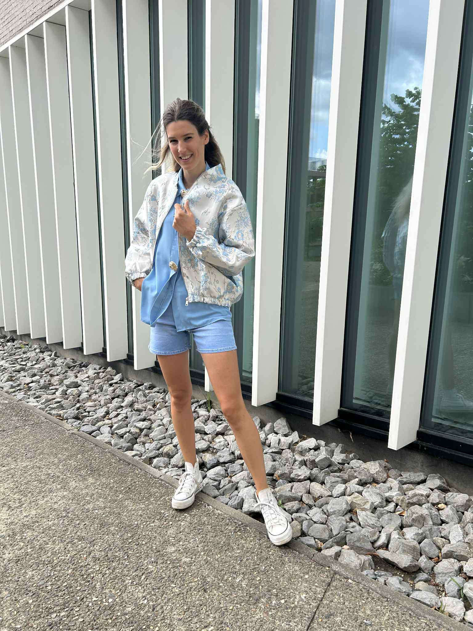 Effen jeansshort met een aangename stretcht stof. Rits en knoopsluiting.