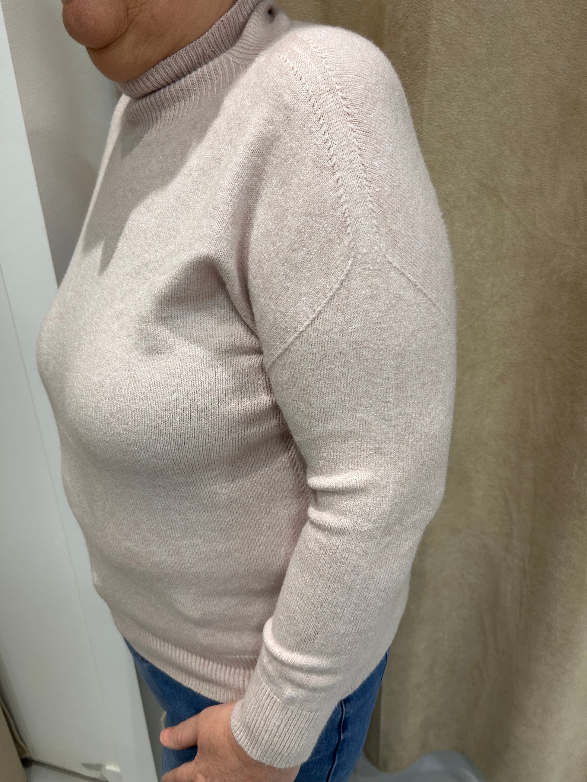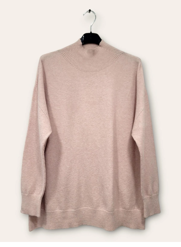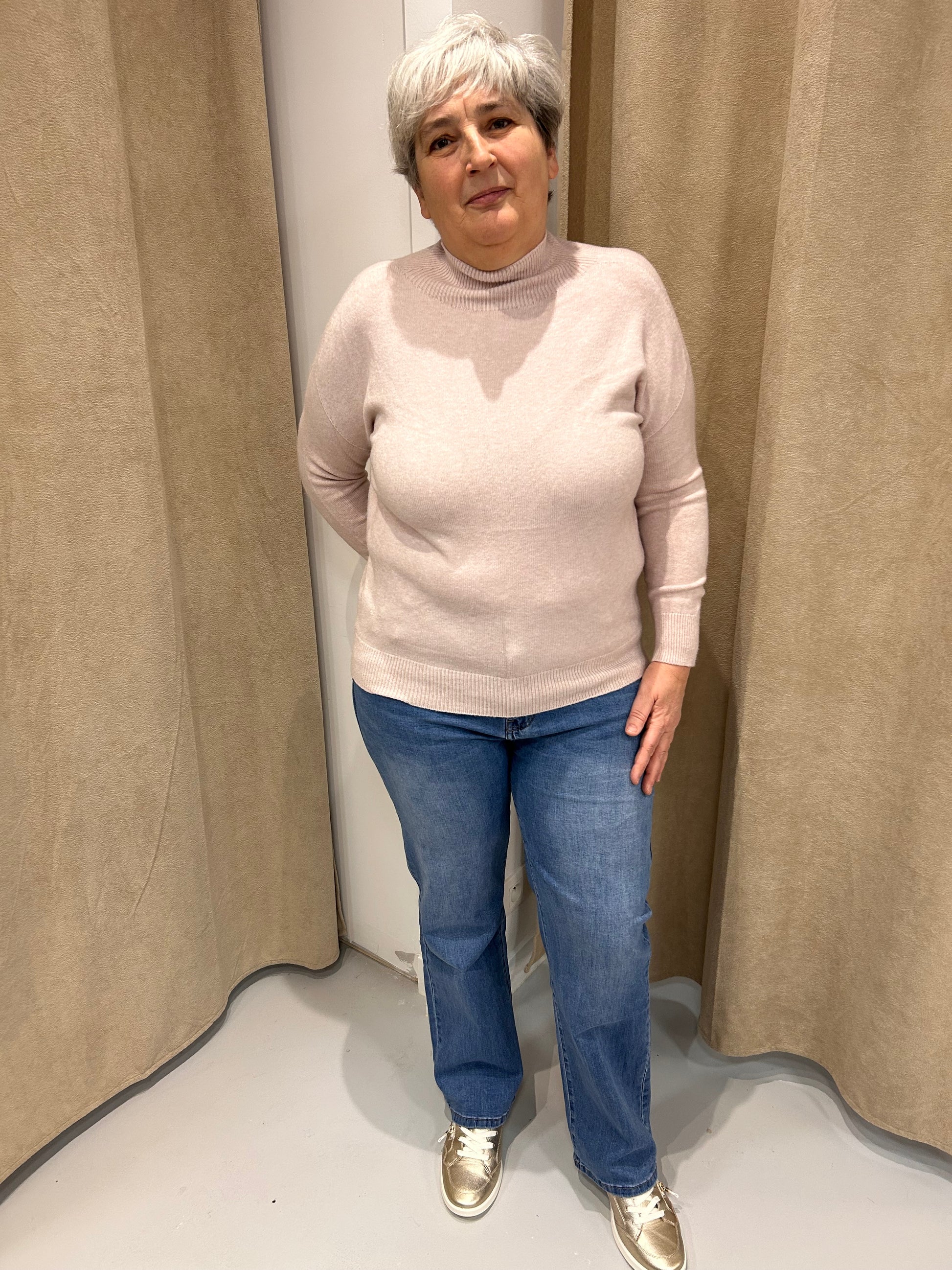 Trui Noëla is een zachte dunne naadloze sweater met een opstaande kraag. Het heeft een leuke details aan de schouder/bovenarm.
