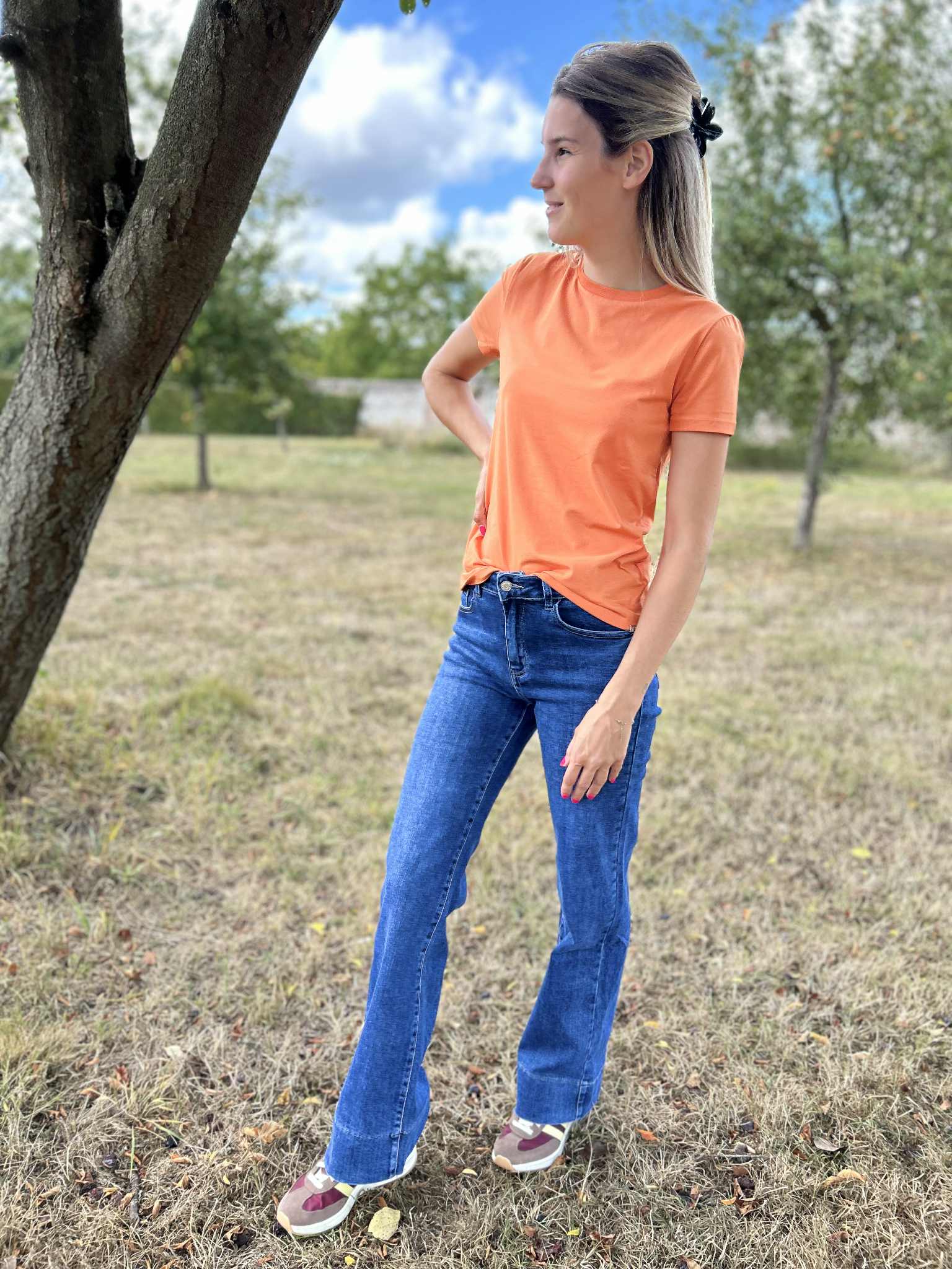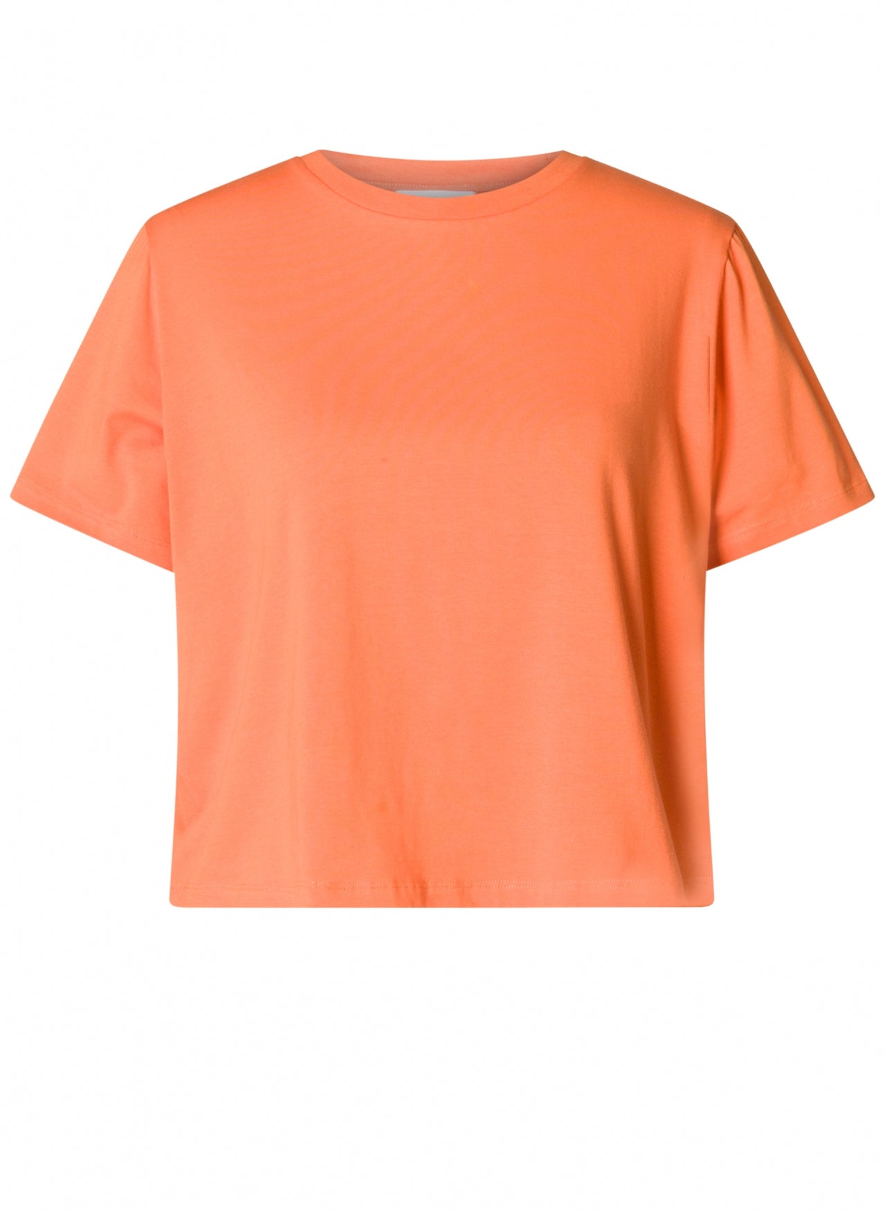Fris, fruitig en helemaal van nu. Dit boxy T-shirt van Ivy Beau in mandarijnkleur geeft elke outfit een energieke boost. Gemaakt van zacht katoen en net wat korter van snit voor die nonchalante, moderne vibe.