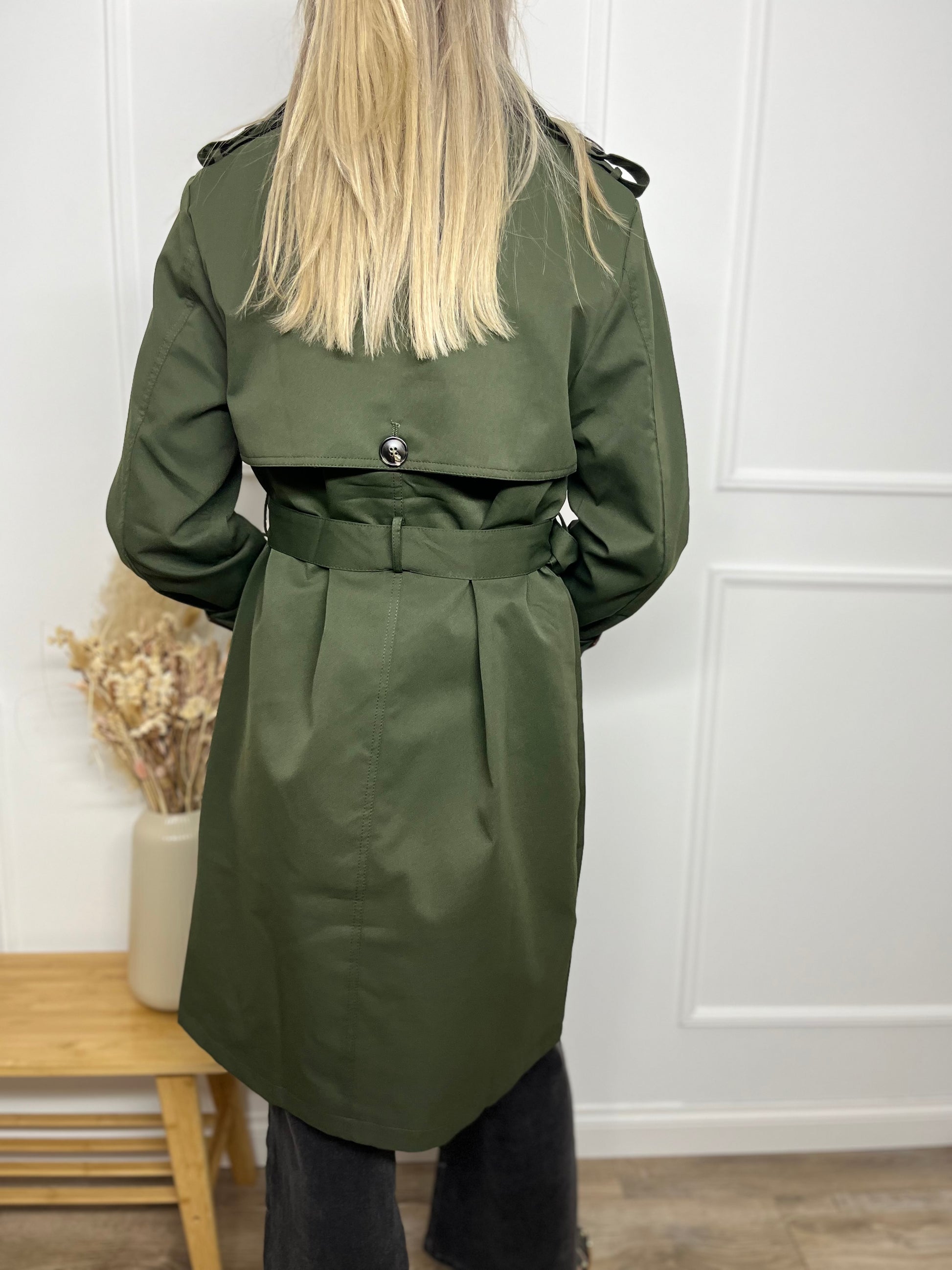 Trenchcoat Nana is een kaki middellange jas. Deze jas sluit met knopjes en heeft handige zakken. Je kan de jas zowel open als gesloten dragen. Leuk te dragen op een broek maar zeker ook op een jurk. De jas heeft aanpasbare lintjes aan de polsen en aan de taille. De trenchcoat, een must-have die elk jaar uitkomt, kies voor deze korte versie voor meer originaliteit!