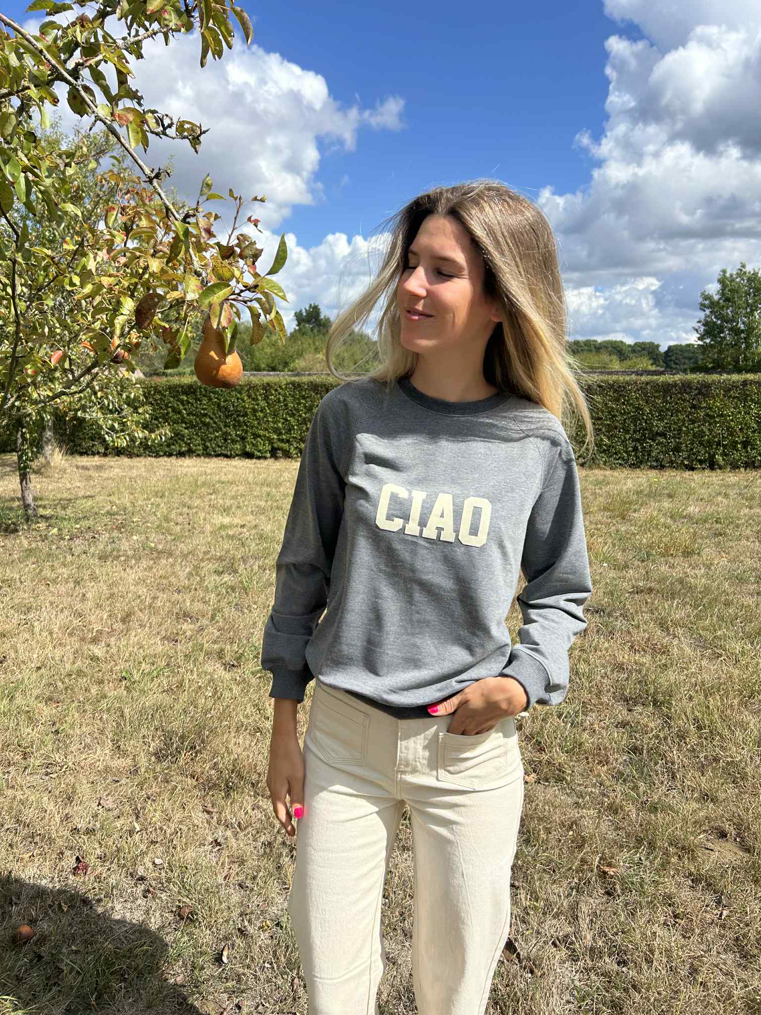 Zeg hallo tegen je nieuwe favoriete sweater van Ivy Beau. Of eigenlijk: ciao. Deze ultrazachte trui is leverbaar in drie heerlijke tinten—grey, mandarin en cream—en geeft je outfit meteen een Italiaanse knipoog. Comfortabel, relaxed en nét een beetje brutaal.
