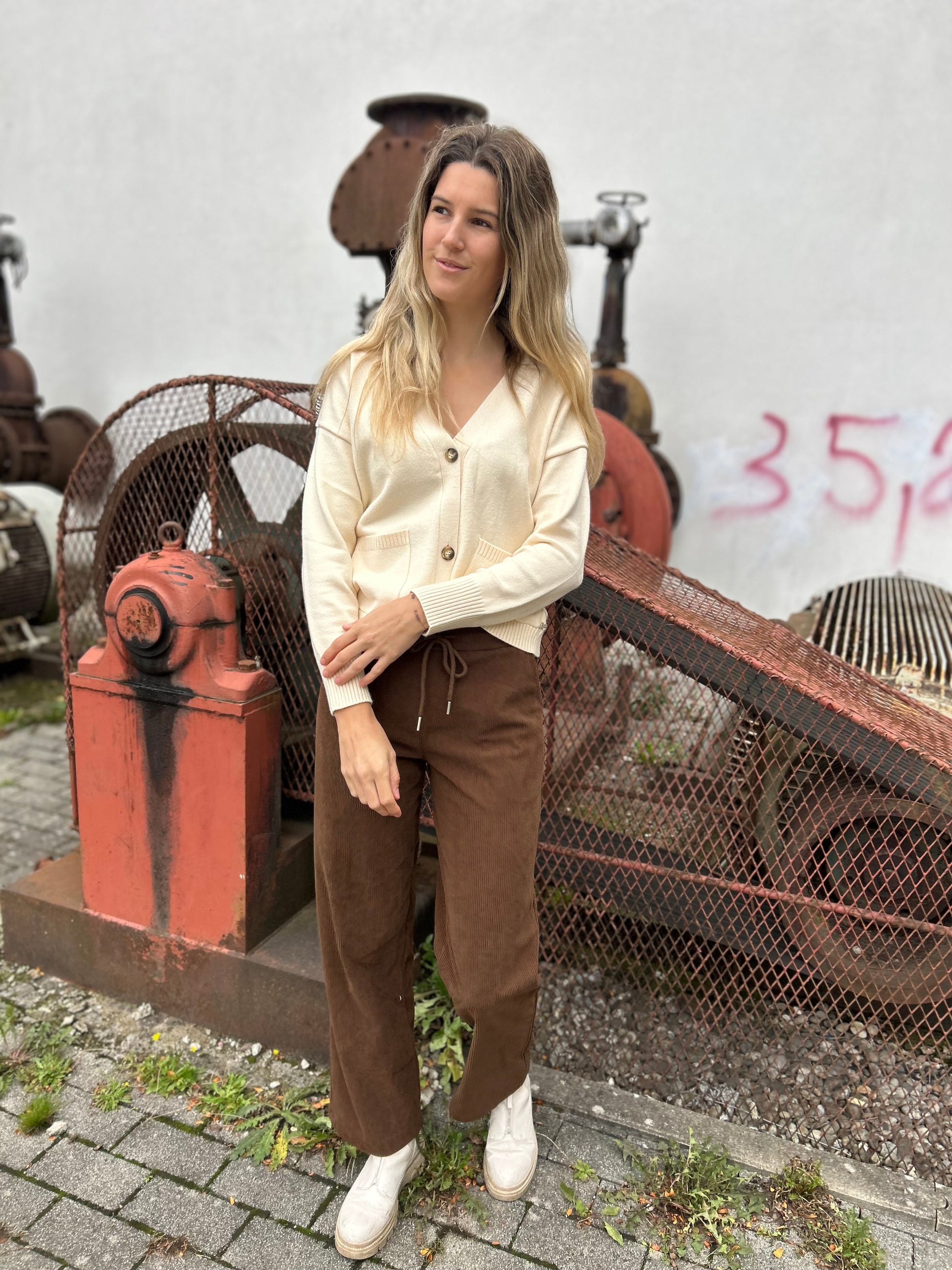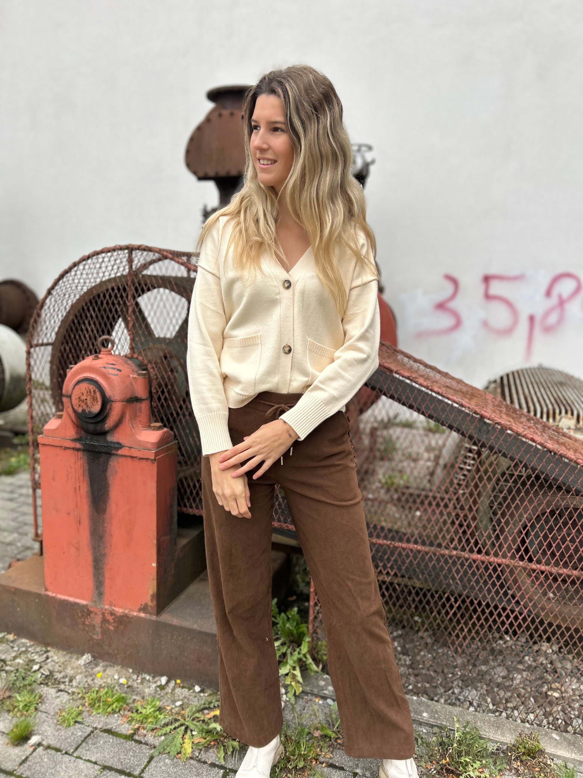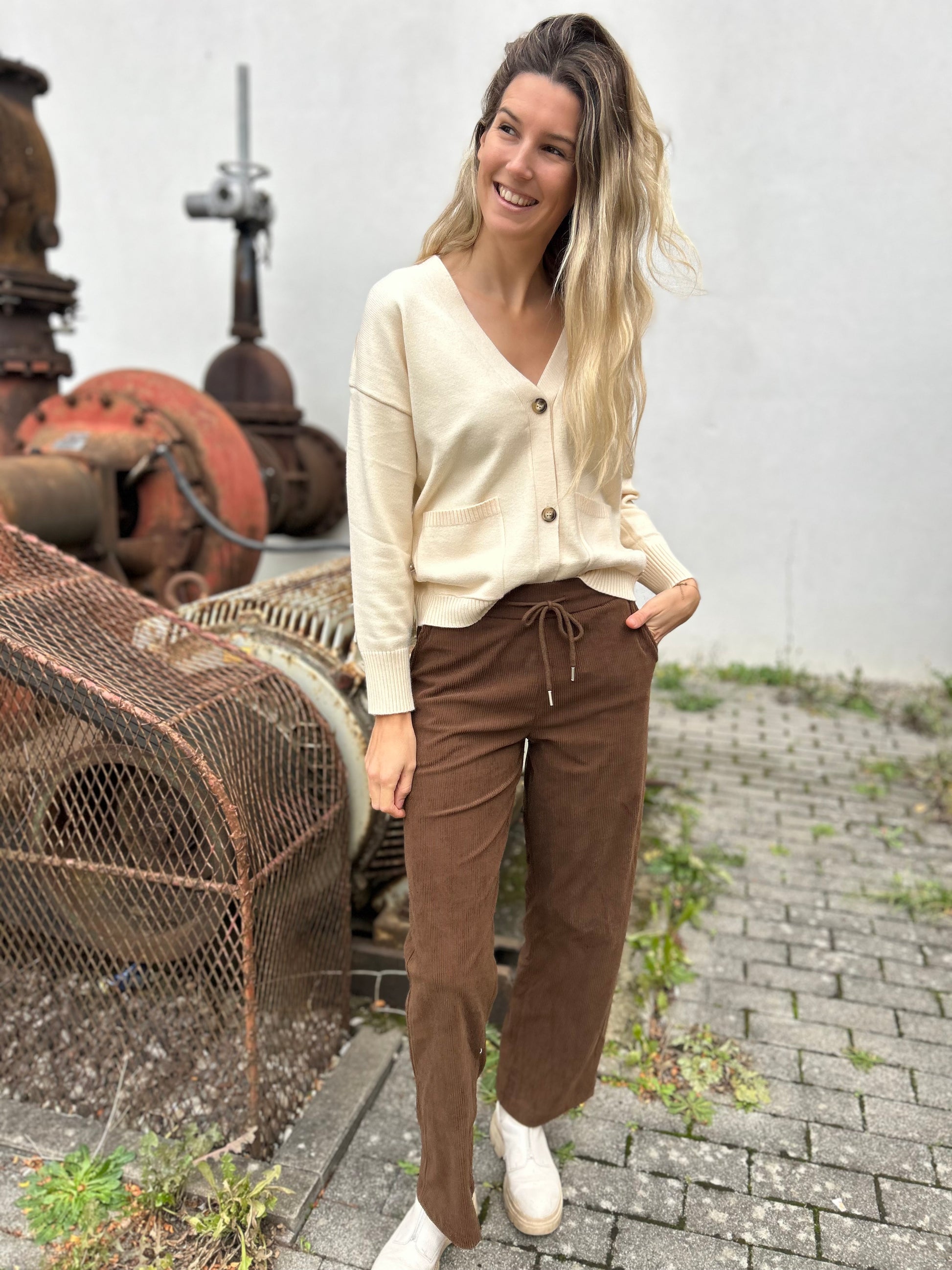 Zacht vest, groot effect. De klassieke V-hals, grote knopen en praktische zakken maken dit vest een blijver. Gemaakt van een comfortabele viscosemix en uitgevoerd in een zachte creamkleur die moeiteloos in elke outfit past.