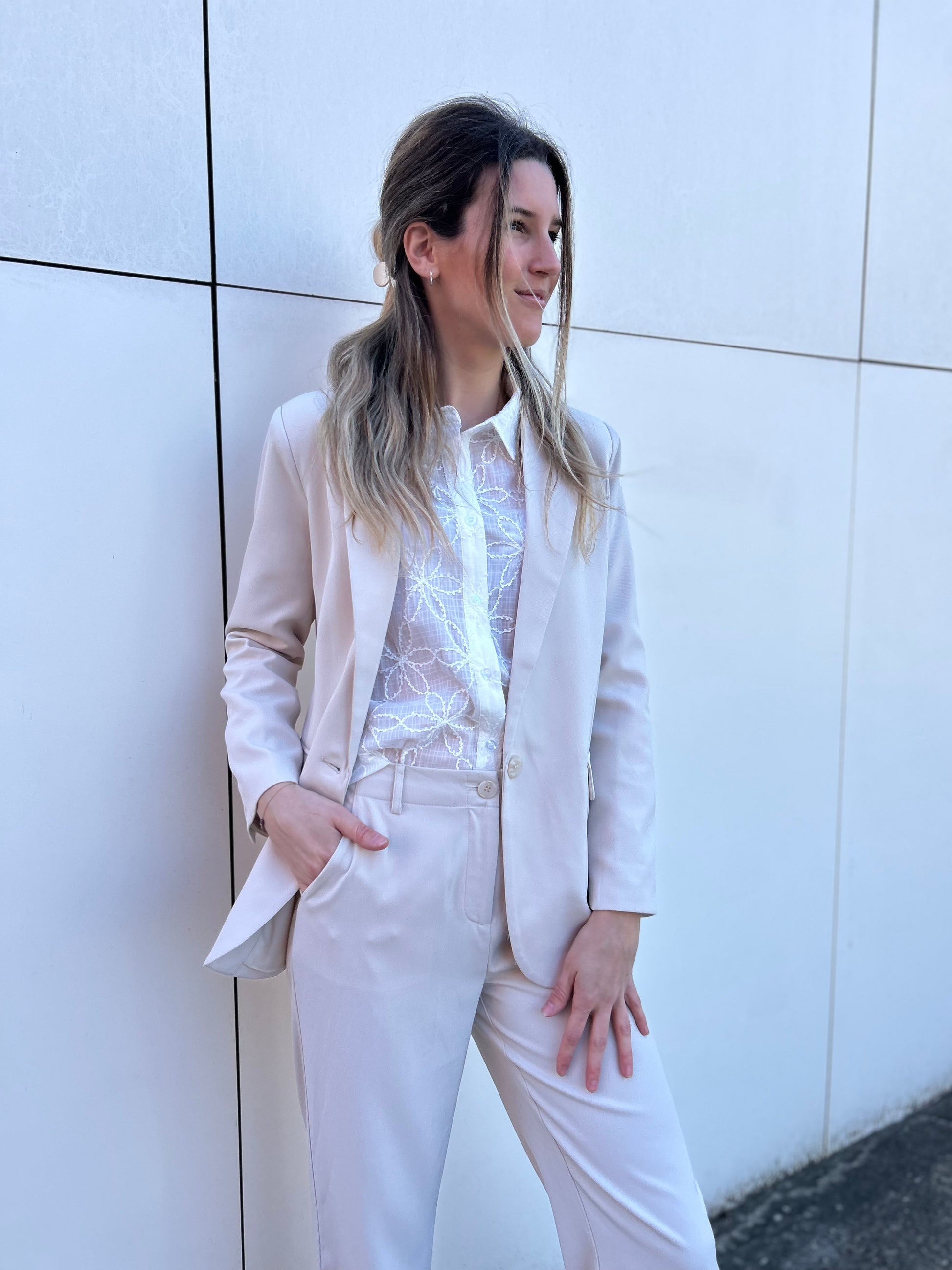Blazer Maisie is een stoere, vrouwelijke, oversized blazer. De blazer heeft paspelzakken met klep aan de voorzijde en sluit met een enkele knoopsluiting. De blazer is gemaakt van een rijke stof bestaande uit polyester en rayon en is volledig gevoerd. Aan de achterzijde van de blazer zit een kleine split. De lengtemaat van Blazer Maisie is 75 cm bij een maat S. De mouwlengte is 60 cm. Combineer met pants Solange in dezelfde kleur voor een matching set.