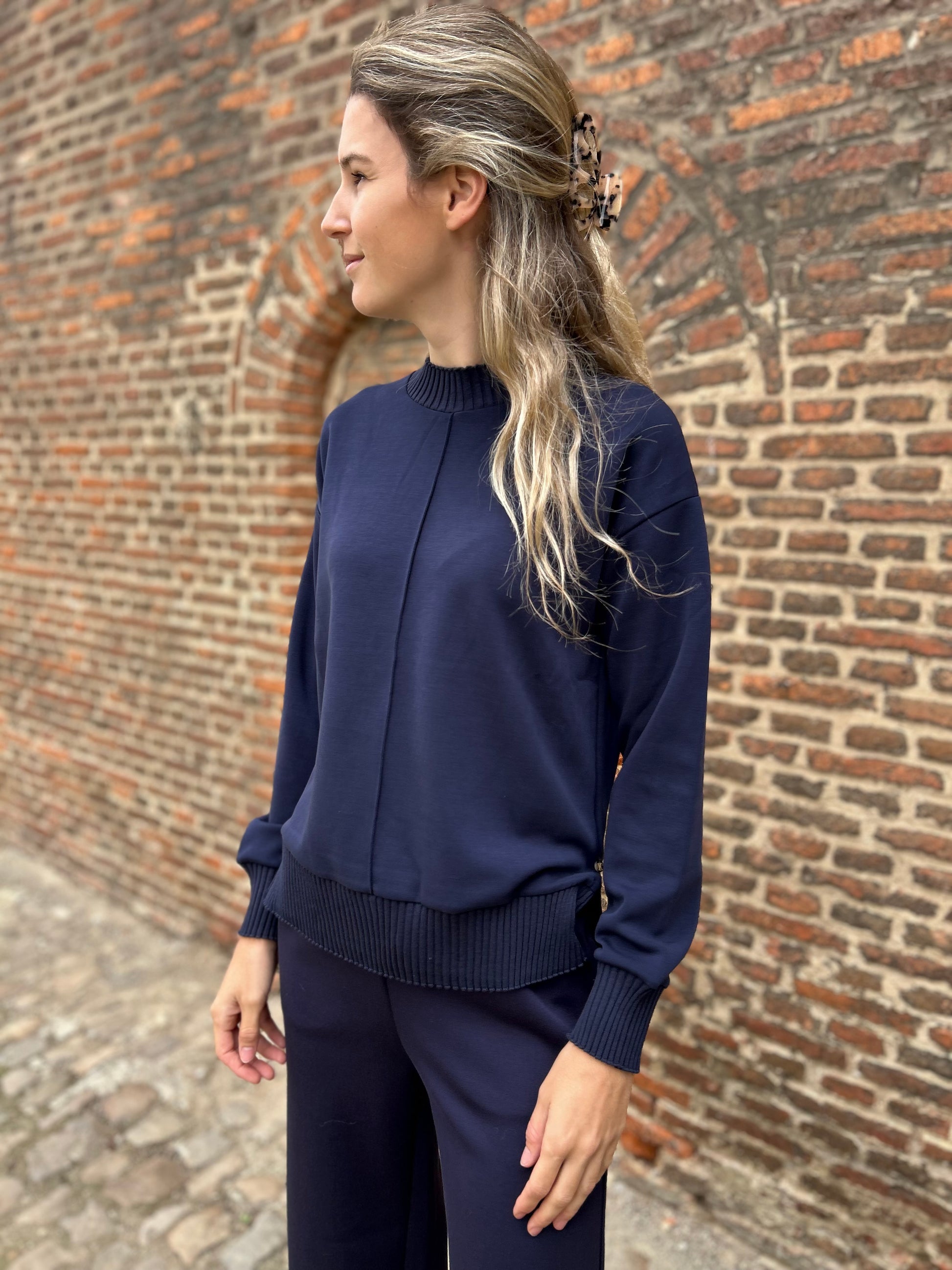 Deze sweater is gemaakt van een zachte mix van polyester, modal en elastaan, waardoor hij heerlijk comfortabel en soepel aanvoelt. De ribboorden langs de hals, mouwen en onderkant geven een fijne structuur. Met de comfortabele fit is dit een veelzijdige must-have voor elke garderobe.